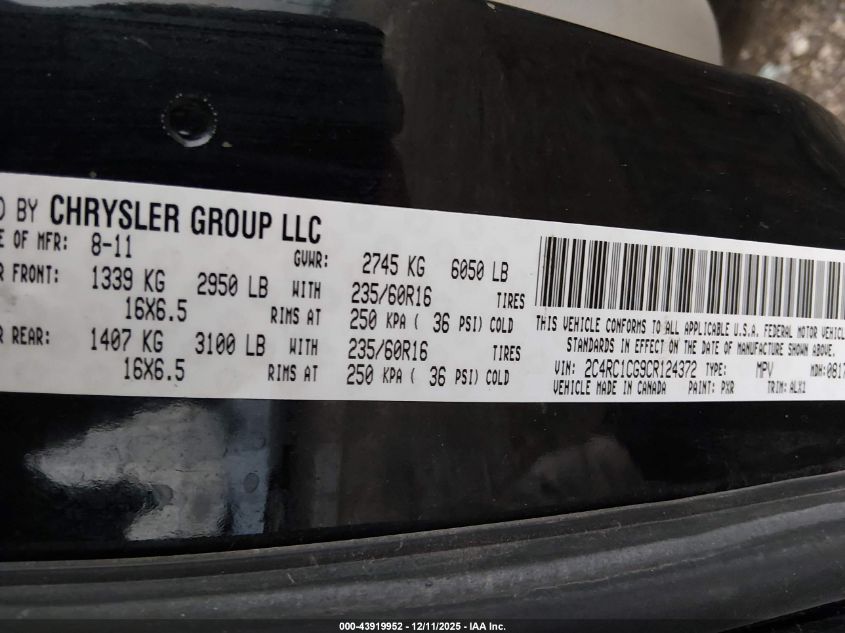 2012 CHRYSLER TOWN & COUNTRY TOURING L