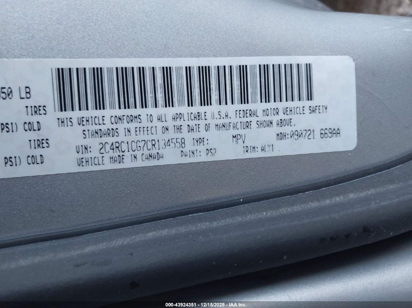 Колір СрібнийЦиліндри 6Привід Передній привідVIN 2C4RC1CG7CR134558Стан Заводиться та їде (перевірено)Ушкодження Права сторона