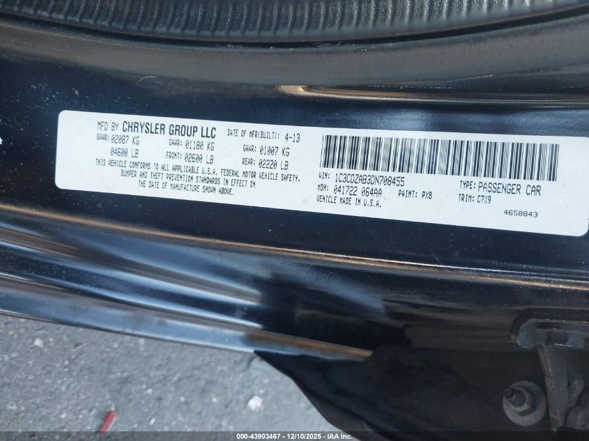 2013 DODGE AVENGER - 1C3CDZAB3DN708455, колір - Чорний, 2.4, Бензин, Передній привід із США