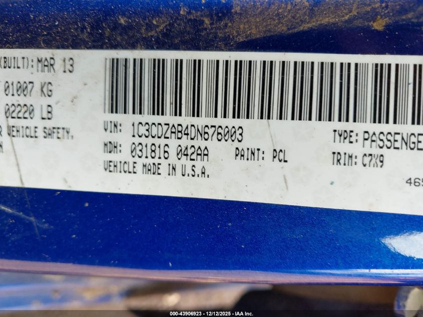 2013 DODGE AVENGER - 1C3CDZAB4DN676003, колір - Синій, 2.4, Бензин, Передній привід із США