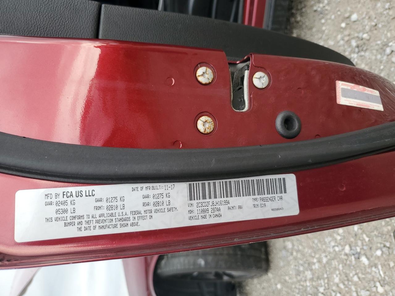 Колір БордовийЦиліндри 8Привід Задній привідVIN 2C3CDZFJ8JH161994Стан Заводиться та їде (перевірено)Ушкодження Низ