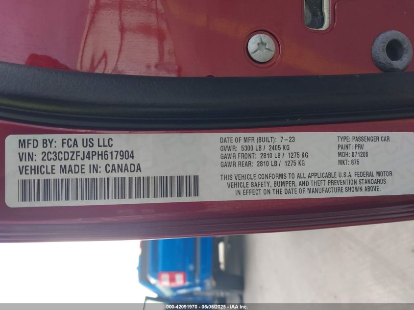 2023 DODGE CHALLENGER - 2C3CDZFJ4PH617904, колір - Бордовий, 6.4, Бензин, Задній привід із США