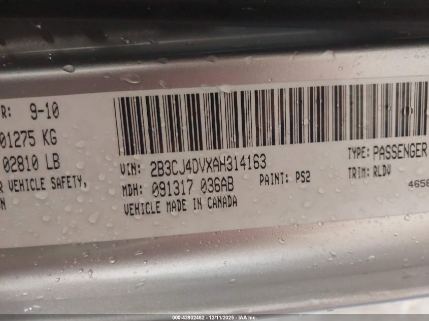 2010 DODGE CHALLENGER - 2B3CJ4DVXAH314163, колір - Срібний, 3.5, Бензин, Задній привід із США