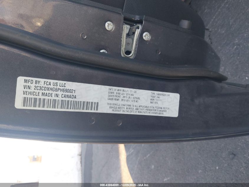2023 DODGE CHARGER - 2C3CDXHG6PH690021, колір - Чорний, 3.6, Бензин, Задній привід із США