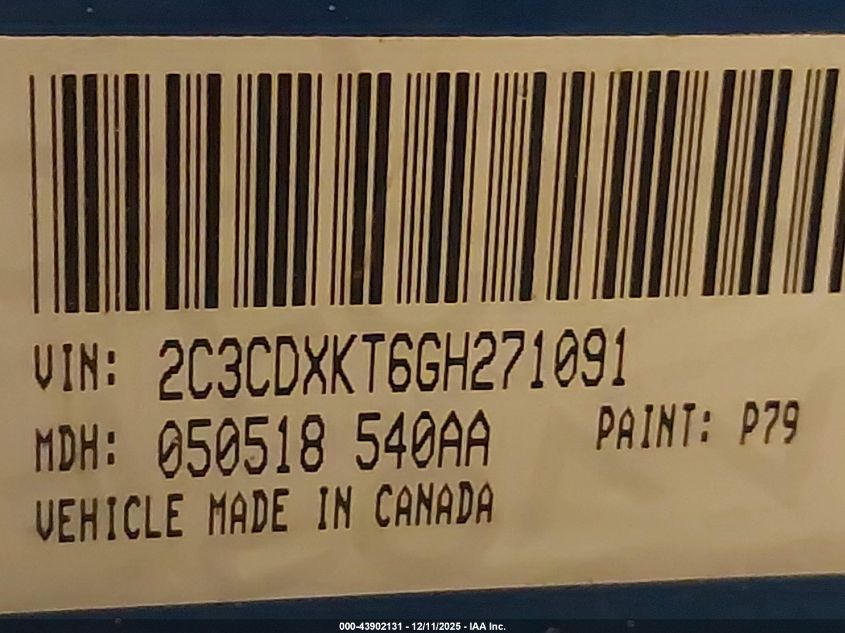 Колір СинійЦиліндри 8Привід Повний привідVIN 2C3CDXKT6GH271091Стан СтаціонарноУшкодження Перекидання