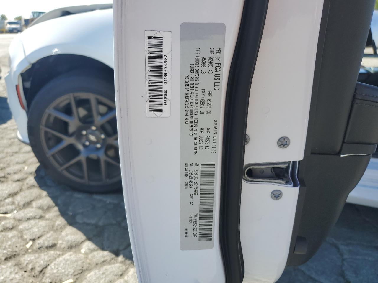 2019 DODGE CHARGER - 2C3CDXCT5KH754062, колір - Білий, 5.7, Бензин, Задній привід із США