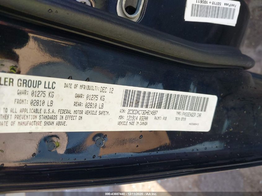 Колір ЧорнийЦиліндри 8Привід Задній привідVIN 2C3CDXCT3DH614997Стан Заводиться та їде (перевірено)Ушкодження Передня права