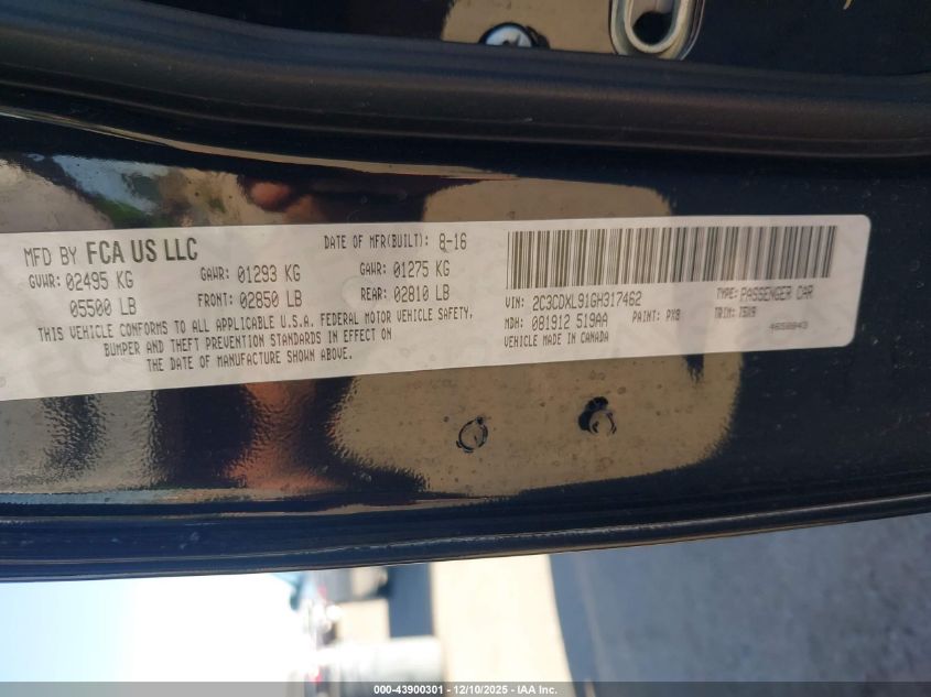 2016 DODGE CHARGER - 2C3CDXL91GH317462, колір - Чорний, 6.2, Бензин, Задній привід із США
