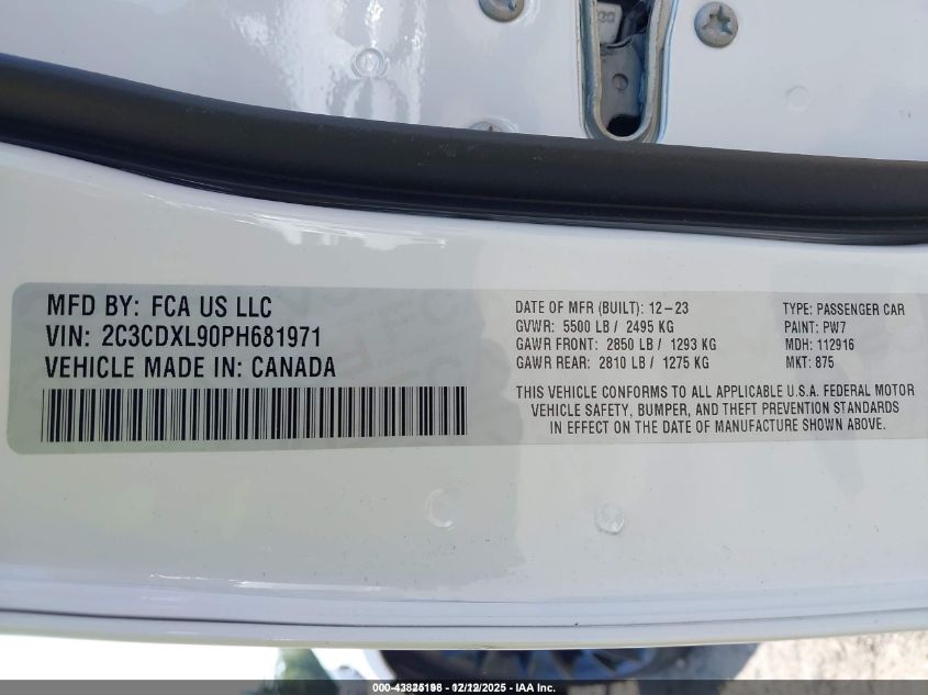 2023 DODGE CHARGER - 2C3CDXL90PH681971, колір - Білий, 6.2, Бензин, Задній привід із США