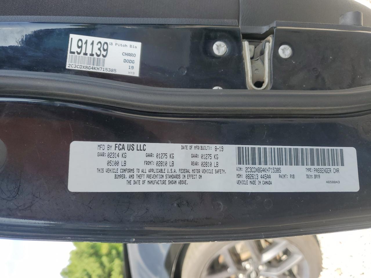 2019 DODGE CHARGER - 2C3CDXBG4KH715385, колір - Чорний, 3.6, Бензин, Задній привід із США