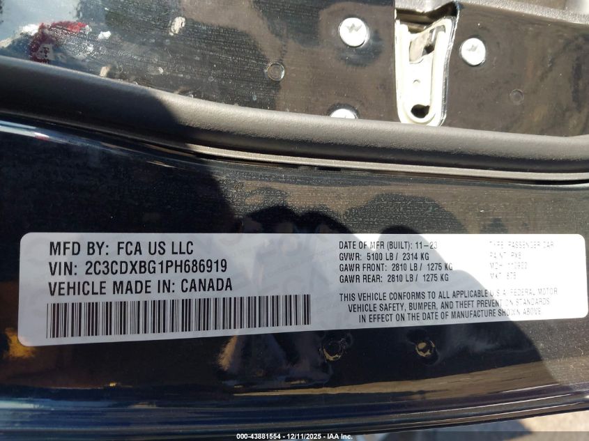 2023 DODGE CHARGER - 2C3CDXBG1PH686919, колір - Чорний, 3.6, Бензин, Задній привід із США