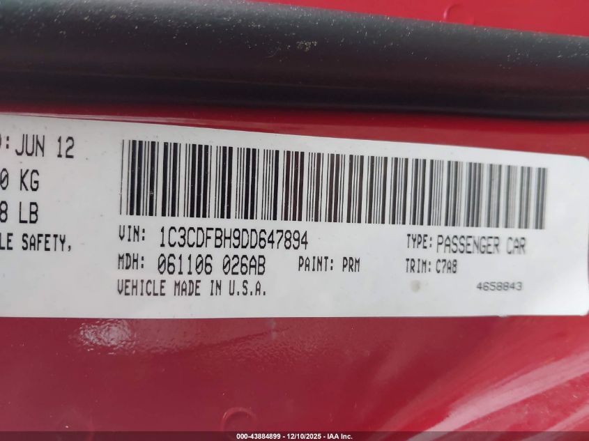 Колір ЧервонийЦиліндри 4Привід Передній привідVIN 1C3CDFBH9DD647894Стан СтаціонарноУшкодження Звичайний зносДата аукціона 2025-12-17