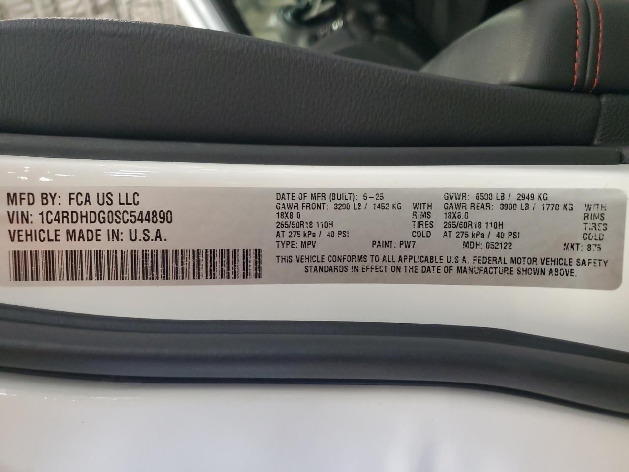 2025 DODGE DURANGO - 1C4RDHDG0SC544890, колір - Білий, 3.6, Бензин, Задній привід із США