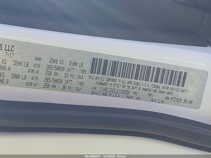 Колір БілийЦиліндри 6Привід Повний привідVIN 1C4RDJDG5JC133250Стан Заводиться та їде (перевірено)Ушкодження З боків