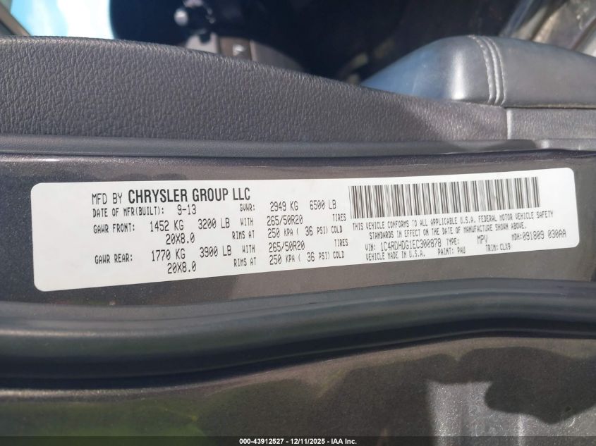 Колір СірийЦиліндри 6VIN 1C4RDHDG1EC300878Стан Заводиться та їде (перевірено)Ушкодження Ліва сторона