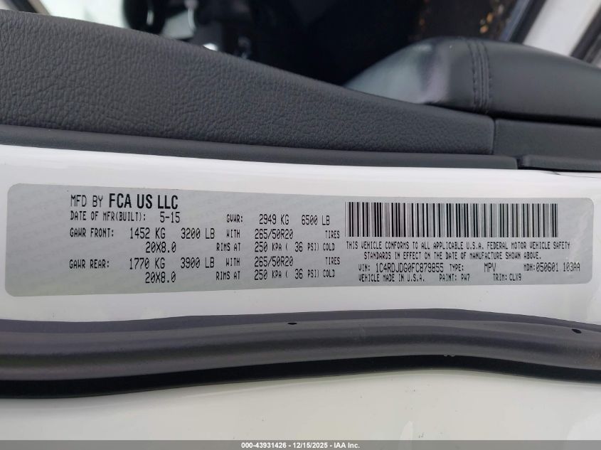 Колір БілийЦиліндри 6Привід Повний привідVIN 1C4RDJDG0FC879855Стан Заводиться та їде (перевірено)Ушкодження Передня або задня