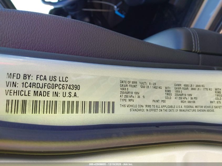 2023 DODGE DURANGO - 1C4RDJFG0PC674390, колір - Срібний, 3.6, Бензин, Повний привід із США
