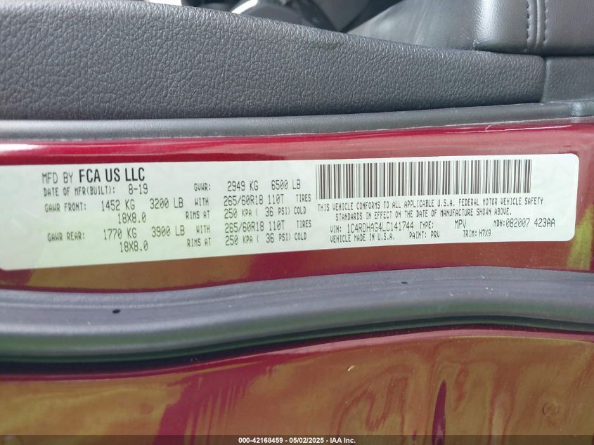 Колір БургундіяЦиліндри 6VIN 1C4RDHAG4LC141744Стан СтаціонарноУшкодження З боків