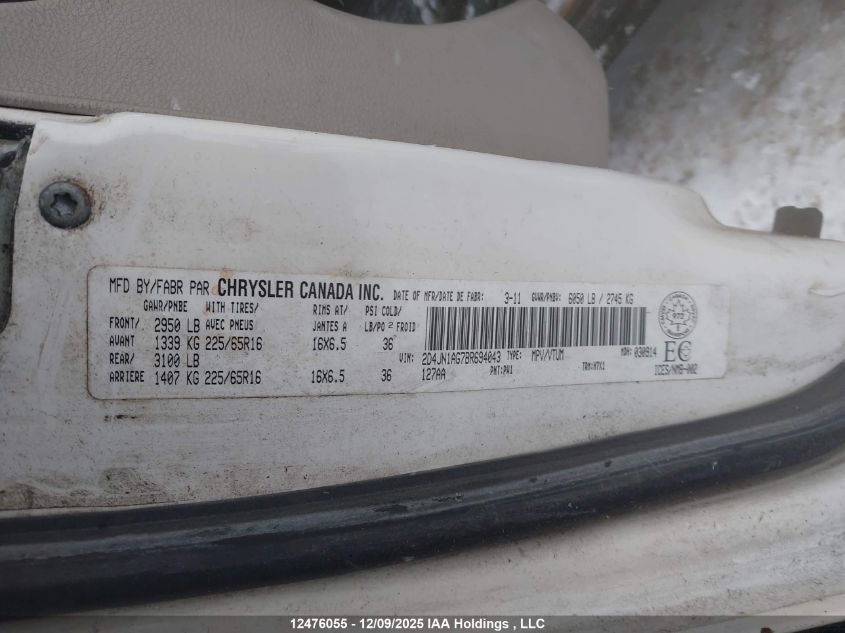 2011 DODGE GRAND CARAVAN - 2D4JN1AG7BR694043, колір - Білий, , , Передній привід із США