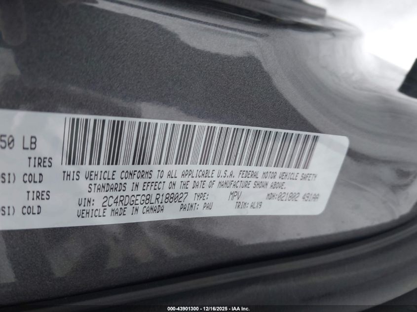 2020 DODGE GRAND CARAVAN - 2C4RDGEG8LR188027, колір - , 3.6, Бензин, Передній привід із США