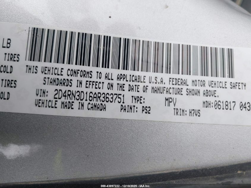 2010 DODGE GRAND CARAVAN - 2D4RN3D16AR363751, колір - Срібний, 3.8, Бензин, Передній привід із США