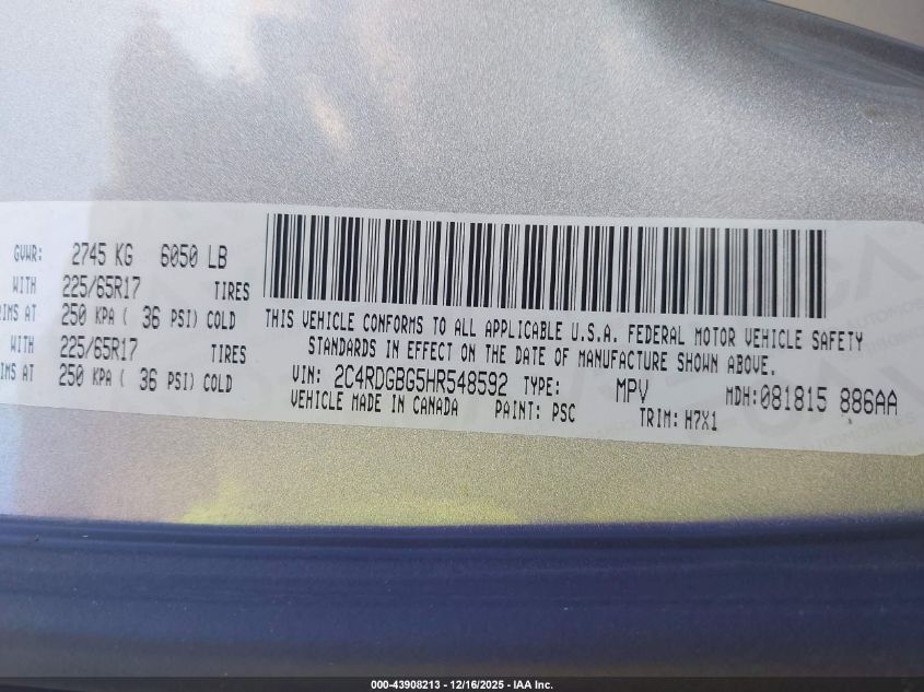 2017 DODGE GRAND CARAVAN - 2C4RDGBG5HR548592, колір - Срібний, 3.6, Бензин, Передній привід із США