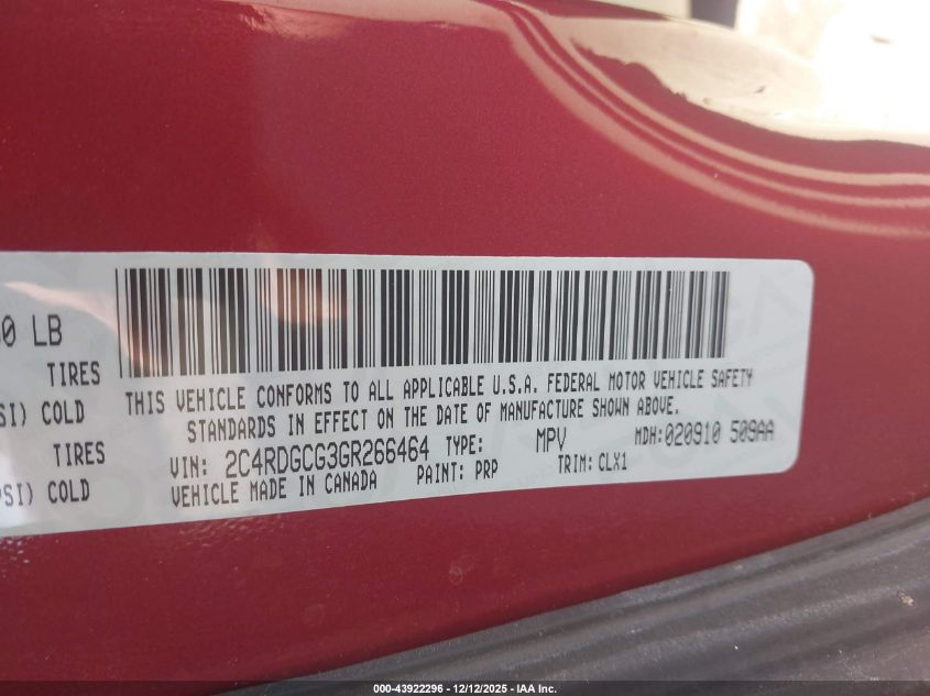 2016 DODGE GRAND CARAVAN - 2C4RDGCG3GR266464, колір - Червоний, 3.6, Бензин, Передній привід із США
