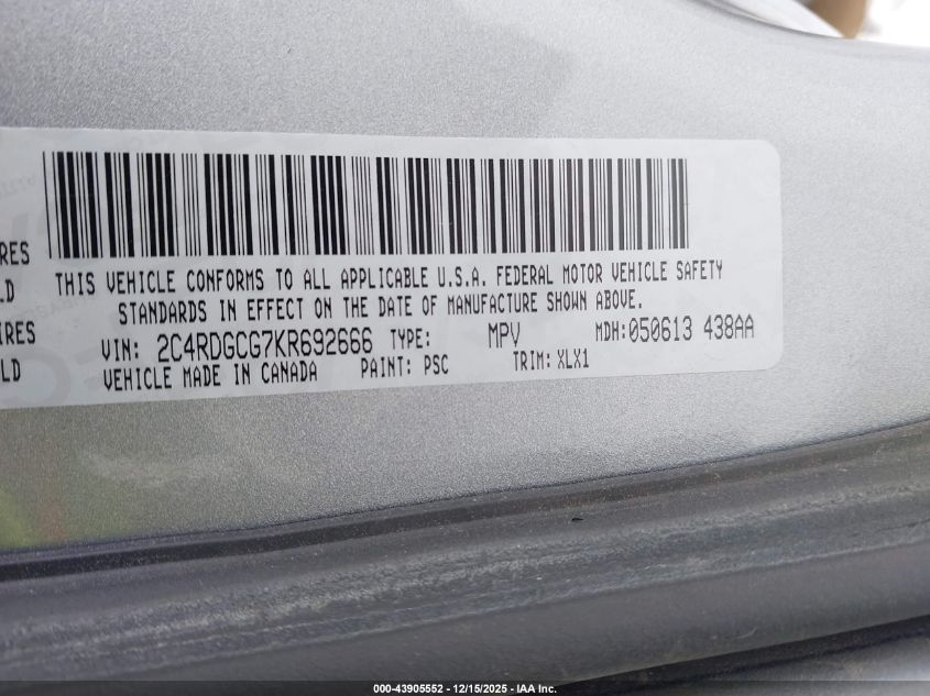 2019 DODGE GRAND CARAVAN - 2C4RDGCG7KR692666, колір - Срібний, 3.6, Бензин, Передній привід із США