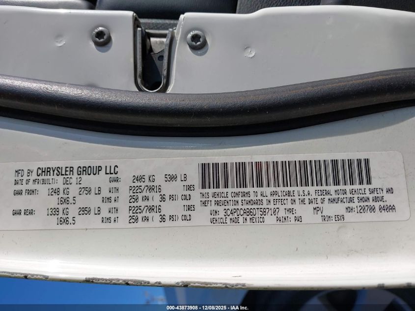 2013 DODGE JOURNEY - 3C4PDCAB6DT587107, колір - Білий, 2.4, Бензин, Передній привід із США