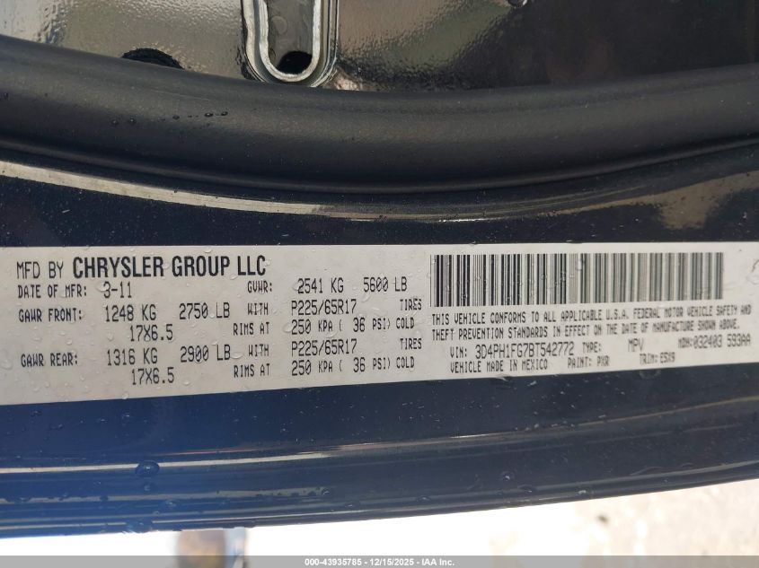 2011 DODGE JOURNEY - 3D4PH1FG7BT542772, колір - Чорний, 3.6, Бензин, Повний привід із США