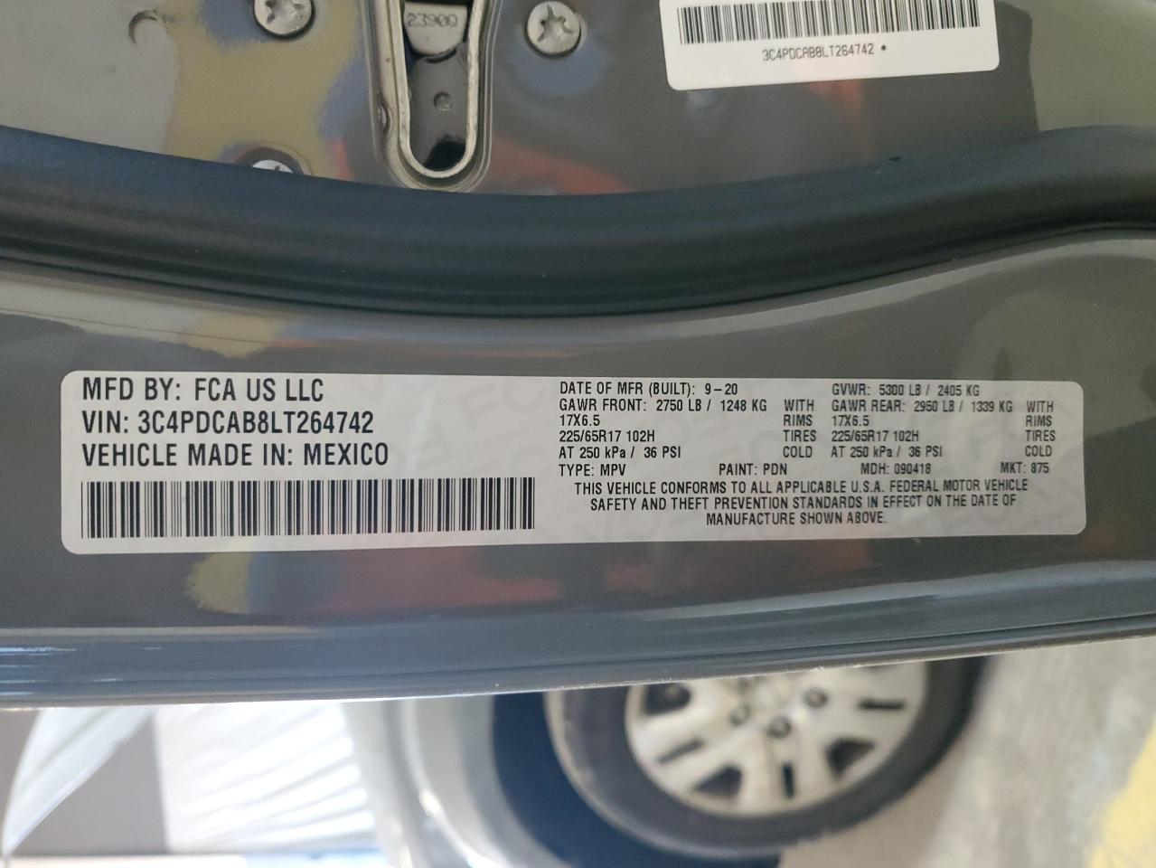Колір СірийЦиліндри 4VIN 3C4PDCAB8LT264742Стан Заводиться та їде (перевірено)Ушкодження Задня