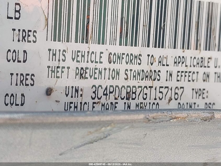 Колір СрібнийЦиліндри 4Привід Передній привідVIN 3C4PDCBB7GT157167Стан СтаціонарноУшкодження Перекидання