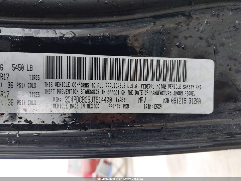 2018 DODGE JOURNEY - 3C4PDCBG5JT514400, колір - , 3.6, Бензин, Передній привід із США