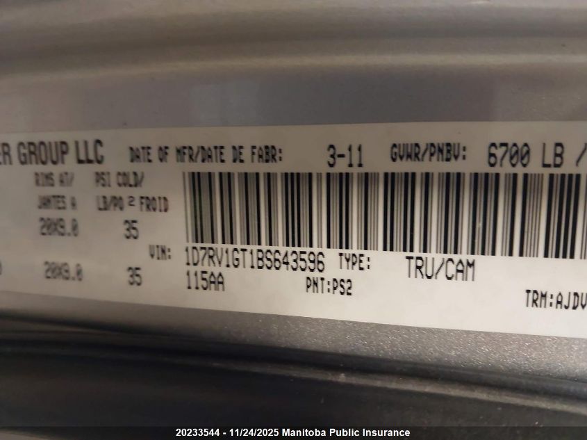 Колір СрібнийЦиліндри 8Привід Повний привідVIN 1D7RV1GT1BS643596Стан СтаціонарноУшкодження ВандалізмДата аукціона 2025-12-17