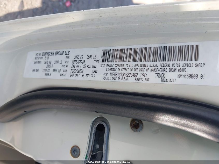 2010 DODGE RAM 1500 - 1D7RB1CT3AS226462, колір - Білий, 5.7, Бензин, із США