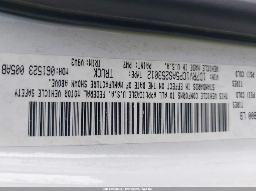 Колір БілийЦиліндри 8Привід Повний привідVIN 1D7RV1CP5AS253012Стан СтаціонарноУшкодження Передня і задня Дата аукціона 2025-12-18