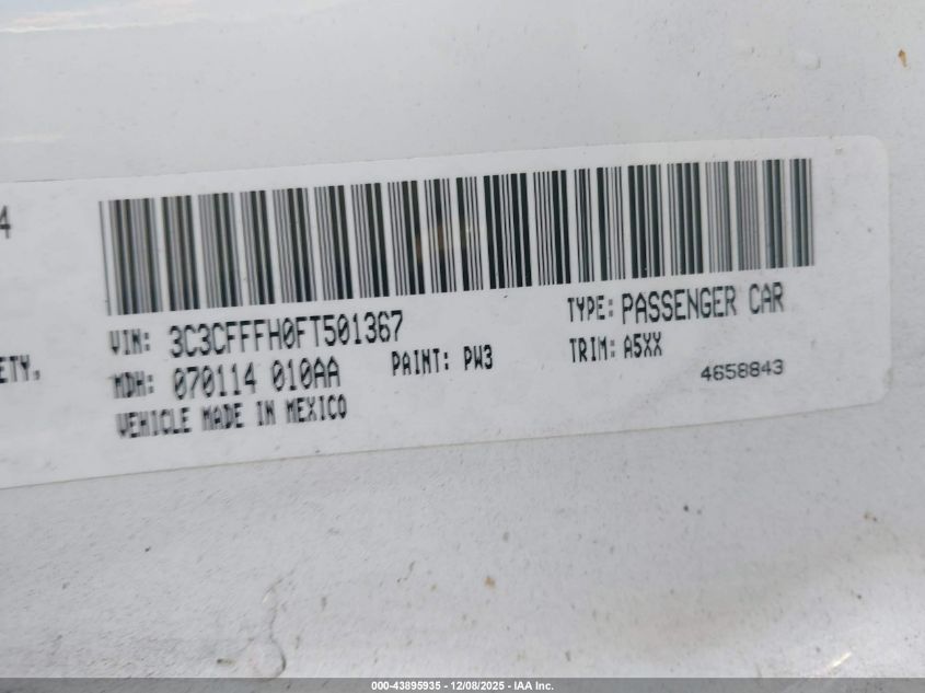 Колір БілийЦиліндри 4Привід Передній привідVIN 3C3CFFFH0FT501367Стан Заводиться та їде (перевірено)Ушкодження Передня або задня