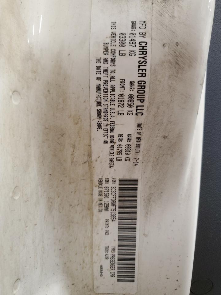 2015 FIAT 500 - 3C3CFFDR0FT513854, колір - Білий, 1.4, Бензин, із США