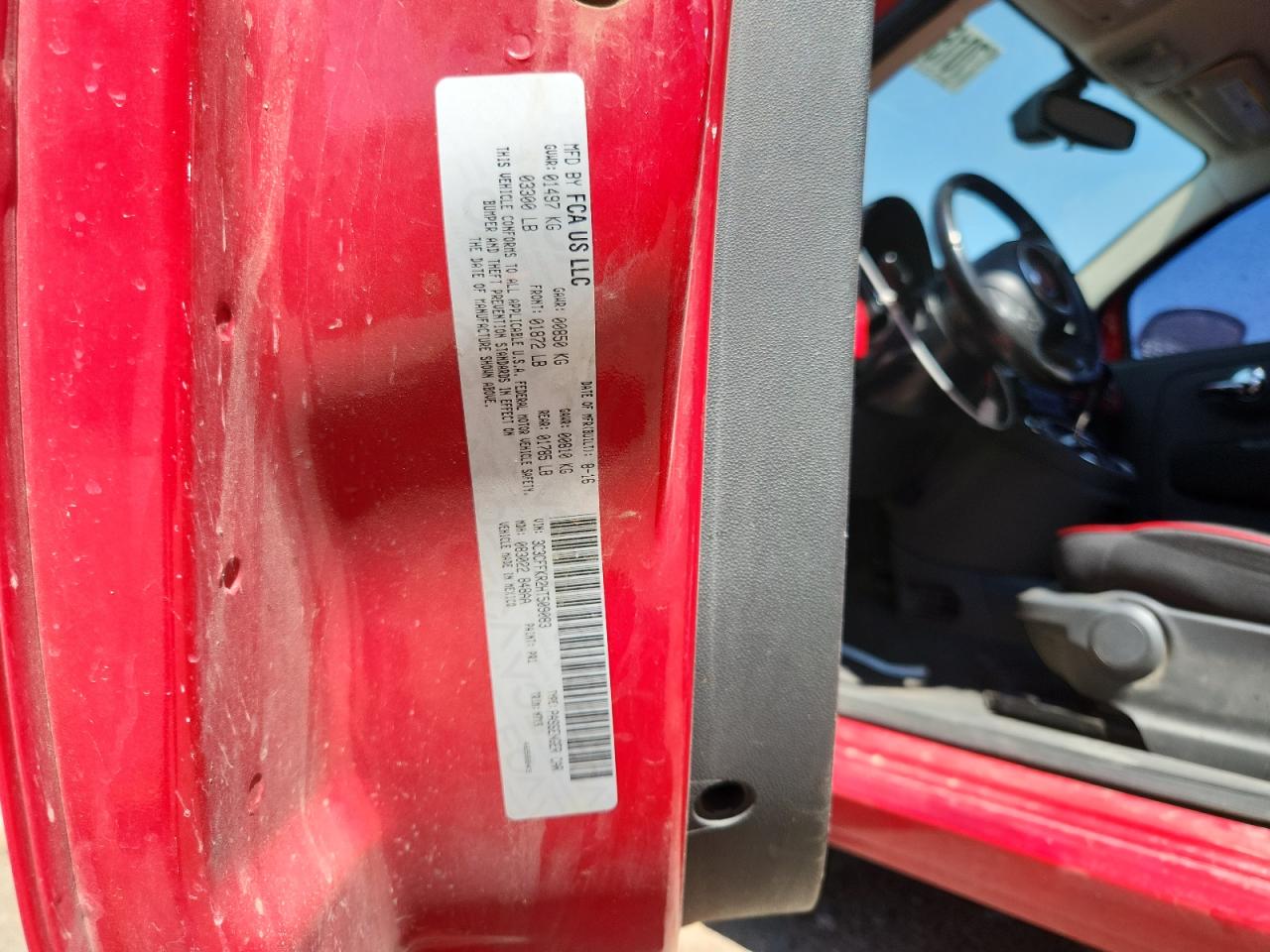 2017 FIAT 500 - 3C3CFFKR2HT509083, колір - Червоний, 1.4, Бензин, із США