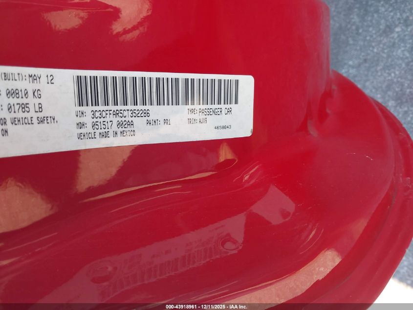 2012 FIAT 500 - 3C3CFFAR5CT352286, колір - Червоний, 1.4, Бензин, Передній привід із США
