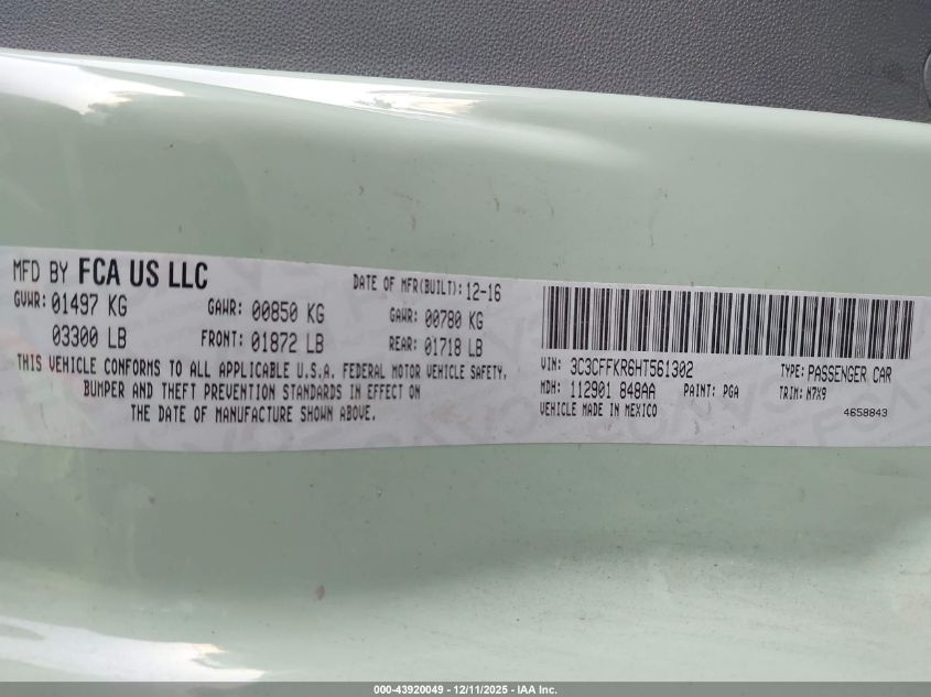 2017 FIAT 500 - 3C3CFFKR6HT561302, колір - Зелений, 1.4, Бензин, Передній привід із США