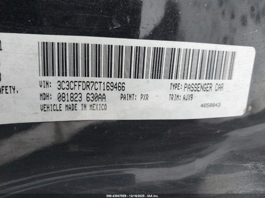 Колір ЧорнийЦиліндри 4Привід Передній привідVIN 3C3CFFDR7CT169466Стан СтаціонарноУшкодження Механічні пошкодження