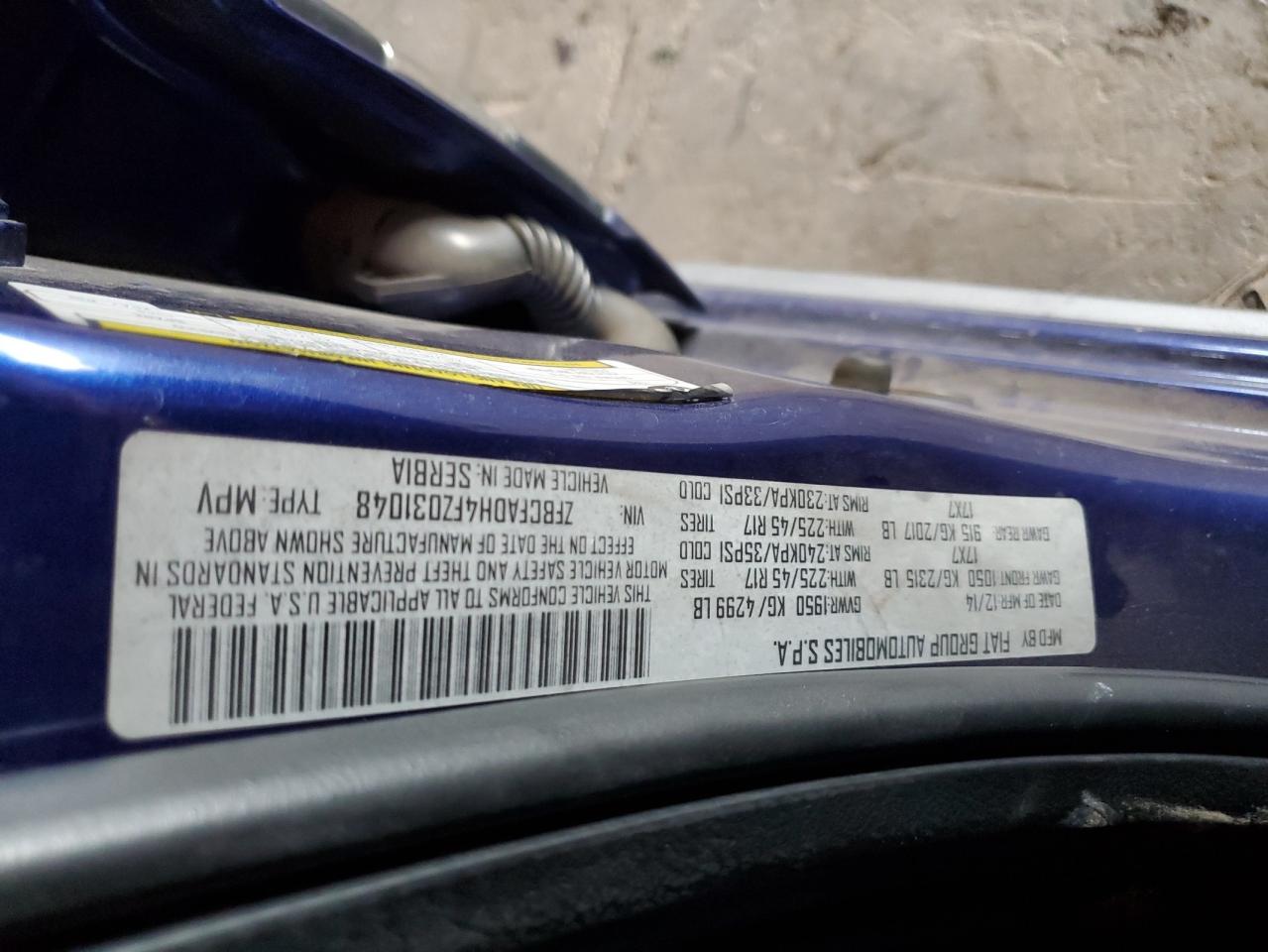 Колір СинійЦиліндри 4VIN ZFBCFADH4FZ031048Стан НевідомоУшкодження НезначніДата аукціона 2025-10-08