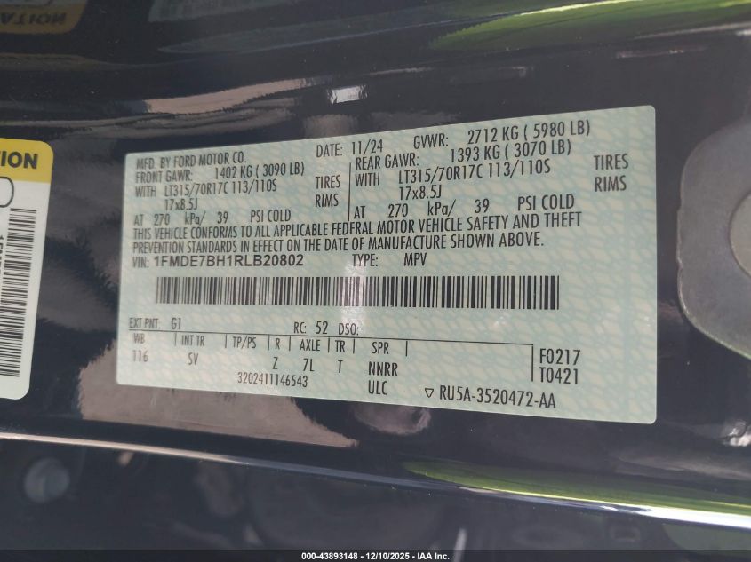 2024 FORD BRONCO - 1FMDE7BH1RLB20802, колір - Чорний, 2.3, Бензин, Повний привід із США