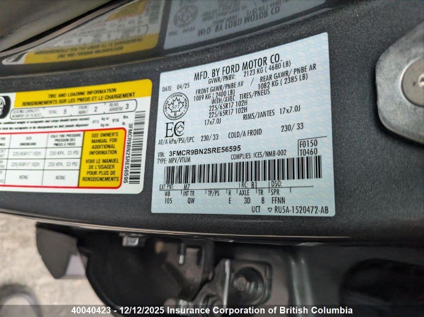 Колір СірийЦиліндри 3Привід Повний привідVIN 3FMCR9BN2SRE56595Стан СтаціонарноУшкодження ЗадняДата аукціона 2025-12-15