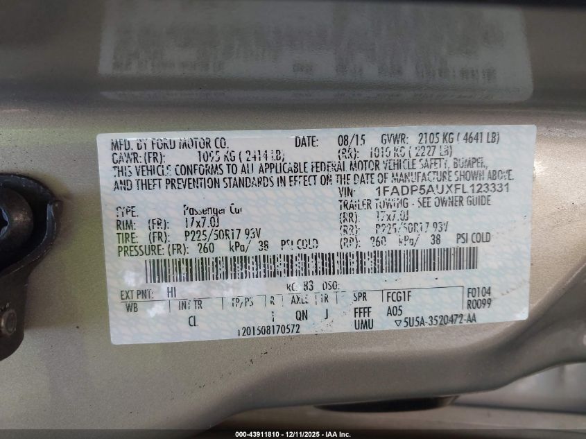 Колір ЗолотийЦиліндри 4Привід Передній привідVIN 1FADP5AUXFL123331Стан Заводиться та їде (перевірено)Ушкодження Задня