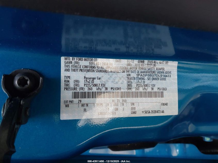 Колір СинійЦиліндри 4Привід Передній привідVIN 1FADP5BU7DL514433Стан Заводиться та їде (перевірено)Ушкодження Передня або задня