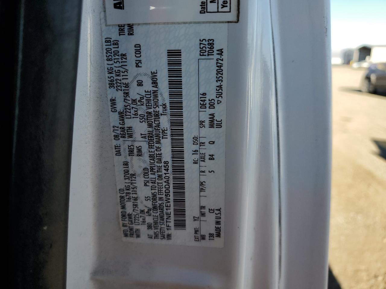 Колір БілийЦиліндри 8Привід Задній привідVIN 1FTNE1EW5DDA01458Стан Заводиться та їде (перевірено)Ушкодження Передня або задня