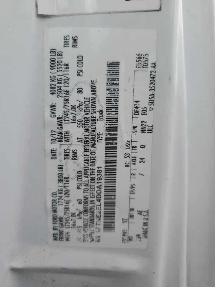 2013 FORD ECONOLINE - 1FTNE2EL4DDA19381, колір - Білий, 5.4, Бензин, Задній привід із США