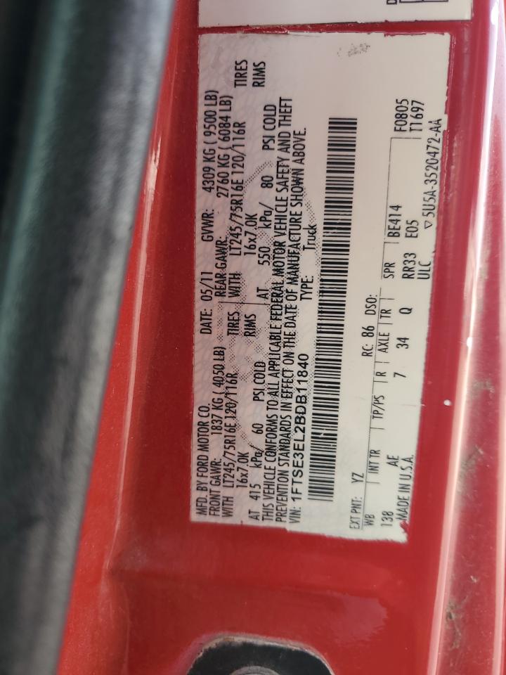 2011 FORD ECONOLINE - 1FTSE3EL2BDB11840, колір - Червоний, 5.4, Бензин, Задній привід із США